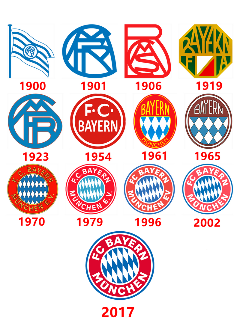 拜仁队徽演变史:拜仁慕尼黑是德国乃至欧洲最成功的足球俱乐部之一,在一百多年的发展历史里,队徽也经历了翻天覆地的变化。
