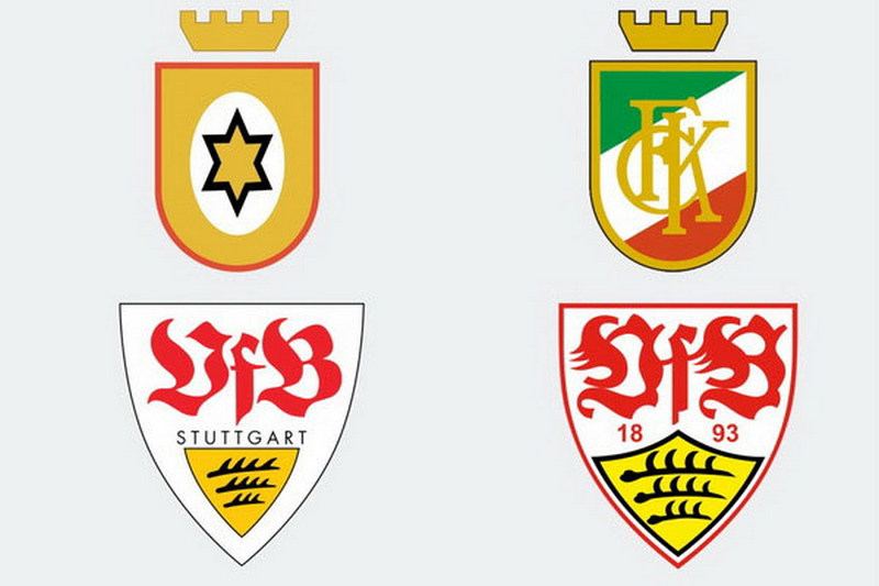 左上角是斯图加特1893-1909年使用的队徽,二战结束前球队一直使用右上角队徽;从1949-1994年球队使用左下角队徽,1998年至今的队徽款式则在原有队徽基础上稍作改动、改为红色边框。