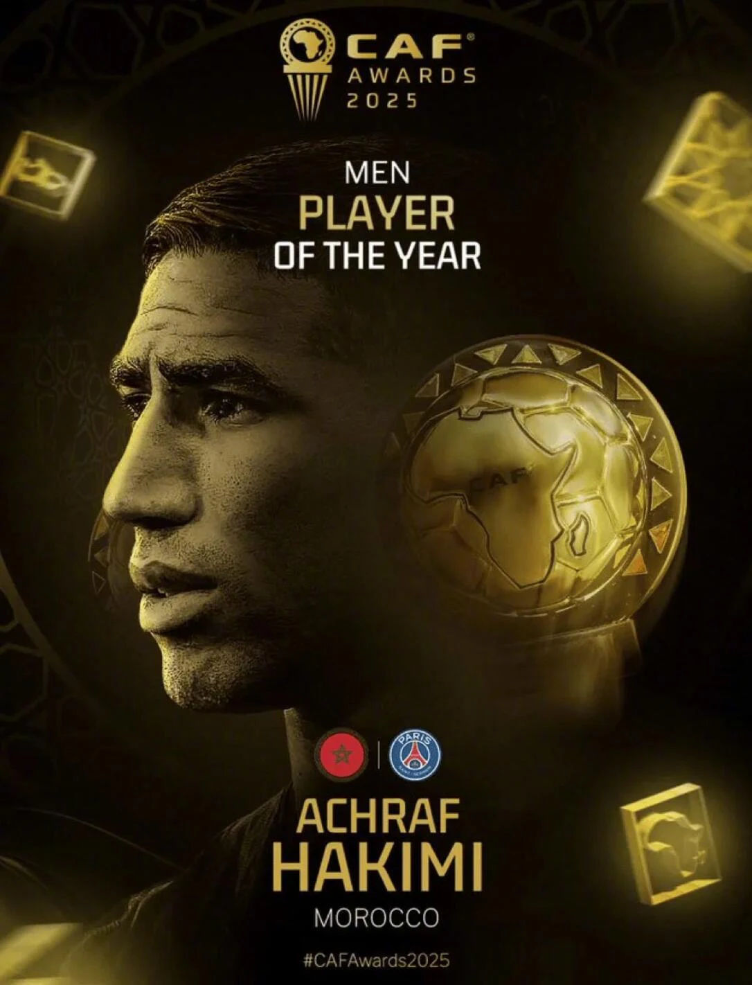 阿什拉夫当选2025非洲足球先生 优得得 2025-11-20热评 336 非洲足联官方消息,阿什拉夫击败萨拉赫和奥斯梅恩,当选2025年非洲足球先生。 阿什拉夫今年帮助巴黎夺得了欧冠冠军、法甲冠军、法国杯冠军,法国超级杯冠军和欧超杯冠军。国家队方面,阿什拉夫帮助摩洛哥获得了2026世界杯直通名额。 阿什拉夫 非洲足球先生 本文由@优得得原创发布。如果文章中的内容侵犯了您的版权和利益,请联系我们!感谢支持 如若转载,请注明出处:https://www.udede.com/news/hot/1763599773.html THE END