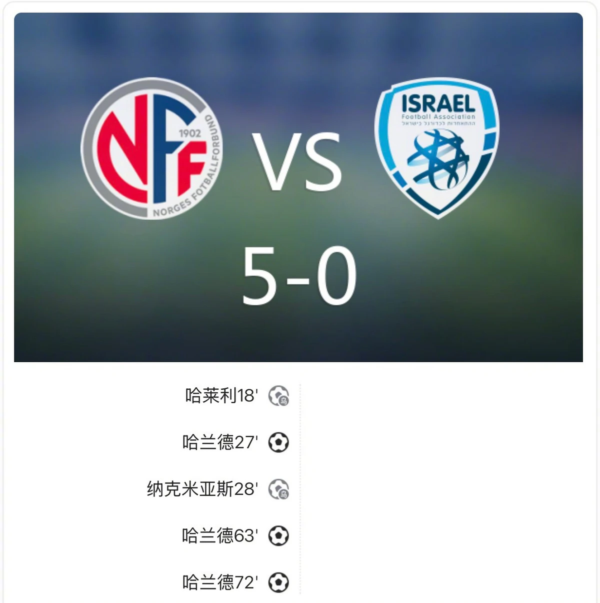 下半场,挪威队继续掌控比赛节奏。第63分钟,努萨左路下底传到门前,哈兰德高高跃起头球破门,挪威4-0以色列。第72分钟,努萨再次送出助攻,哈兰德包抄头球破门,完成帽子戏法,挪威5-0大胜以色列。