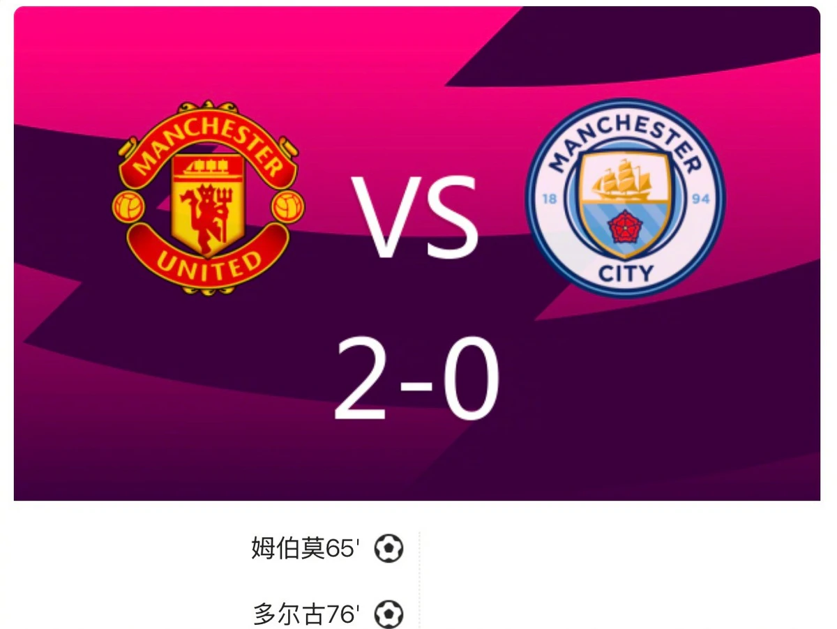 下半场,曼联的进攻终于开花结果。第64分钟,姆伯莫接到B费的传球后低射破门,打破场上僵局。第75分钟,库尼亚右路传中,多尔古铲射得手,将比分扩大为2-0。尽管曼城在比赛中多次制造威胁,但曼联的防守坚如磐石,最终成功守住胜果。