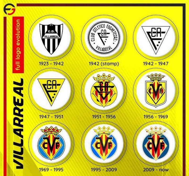 比利亚雷亚尔的首个队徽与现在是截然不同的。与最早的球衣一样,起初是黑白色调的,最后俱乐部采用了巴伦西亚自治区旗帜的样式,即黄色和红色条纹的模式。目前的队徽,中间是俱乐部名字的首字母缩写(VCF), 形状是一座王冠,蓝色的背景,从1966年开始使用,这期间有过几次微调。