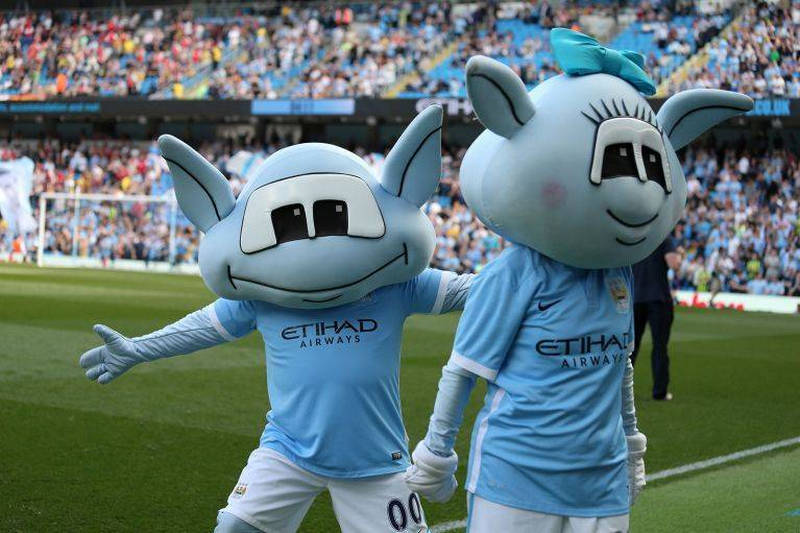 曼城的昵称叫蓝月亮,所以两个吉祥物的名字叫月彻斯特和月光,他们的设定是从蓝色月球而来的外星人,月彻斯特在1996年就出现了,直到2001年他的女友月光为了追随他才降临地球。