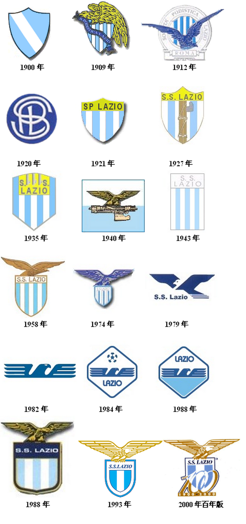 拉齐奥队徽演变史:拉齐奥队徽的主要颜色是蓝、白、金三色。拉齐奥队徽上的动物是一只鹰,由鹰来做为球队的象征是由球队的最初创立者成员之一Luigi Bigiarelli确定的,鹰是古罗马的一种象征,古罗马的军旗就是鹰旗。队徽中的蓝白两色寓义非常深远,它取自于希腊国旗的颜色,当初俱乐部的创始人比吉亚雷利出于对神圣的奥林匹克运动的景仰而将俱乐部的标志色定为蓝白两色。比吉亚雷利希望以此来弘扬奥林匹克精神,同时希望球队能够超越城市地域的限制来代表整个地区。拉齐奥最初的球迷主要是由农村迁徙而来的居民以及包括政府官员和雇员在内的新兴中产阶级组成,与罗马队的球迷有本质不同,但现在两个俱乐部间球迷群体的划分已经不如过去那般泾渭分明。