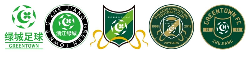 队徽演变史:2022年,浙江FC启用新队徽,对2019版队徽进行了文字和细节的调整处理:上方GREENTOWN FC变更为ZHEJIANG,下面原ZHEJIANG换成FOOTBALL CLUB;由于文字的缩短,中间缎带与1998进行了居中处理;正中间的月桂采用立体化呈现,以此区别绿城集团的标志。